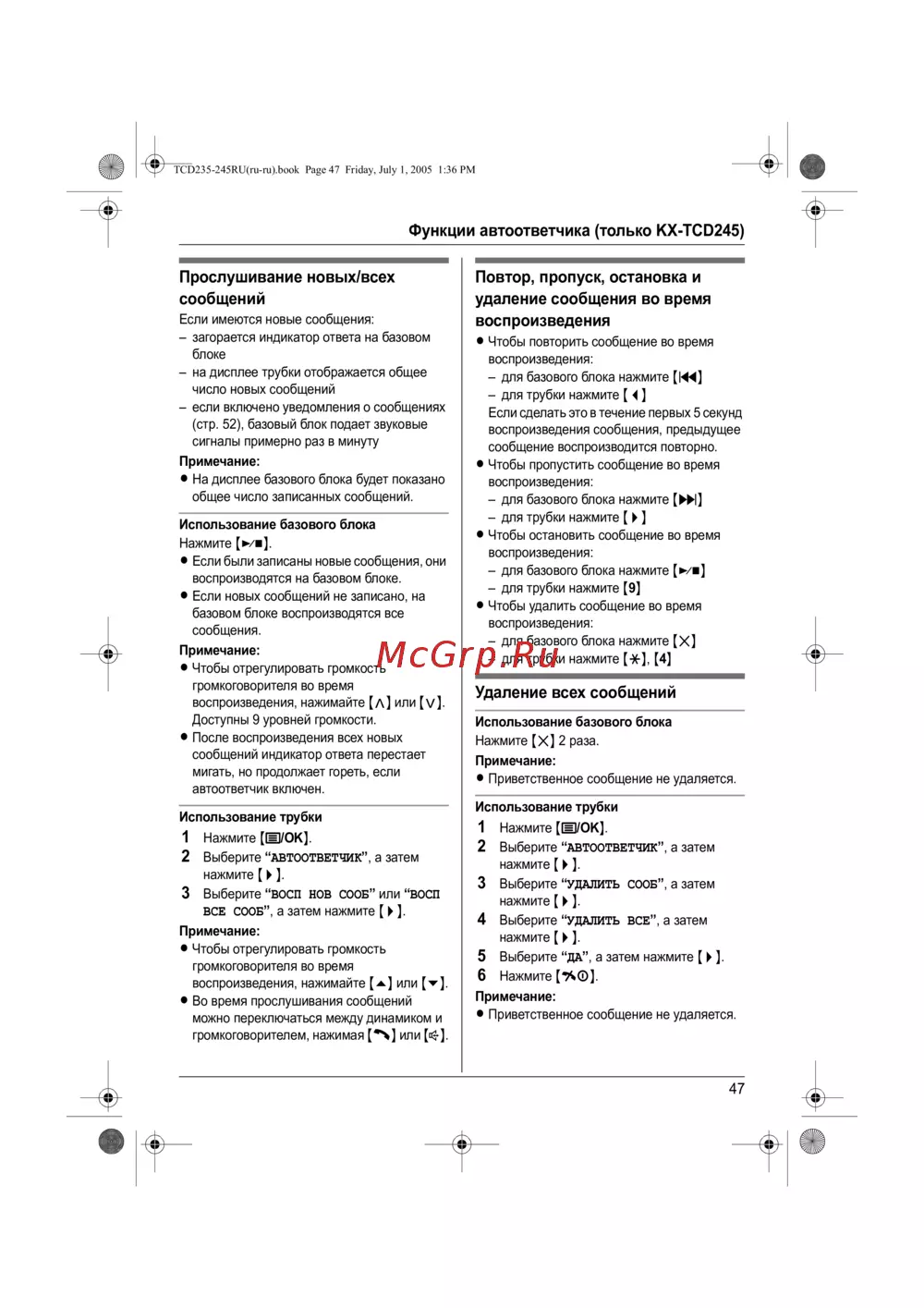 Panasonic KX-TCD245 [47/72] Прослушивание новых всех сообщений
