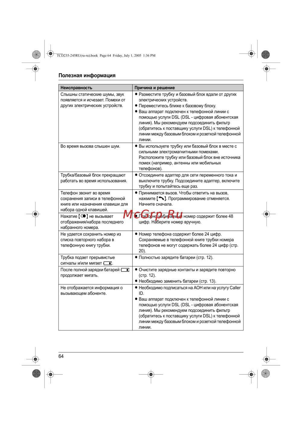 Panasonic KX-TCD245 [64/72] Полезная информация