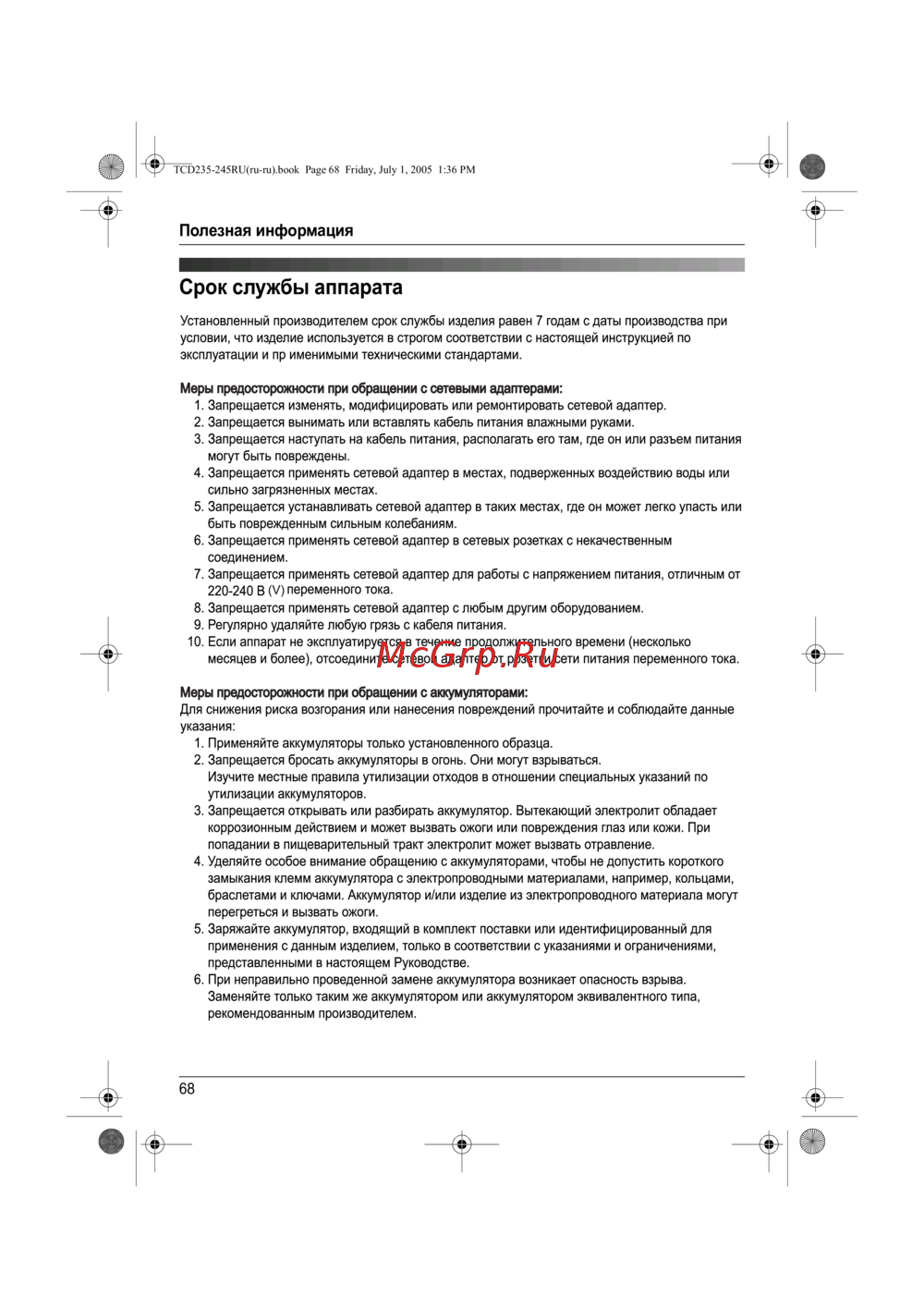 TCD235-245RU(ru-ru).book Page 68 Friday, July 1, 2005 1:36 PM