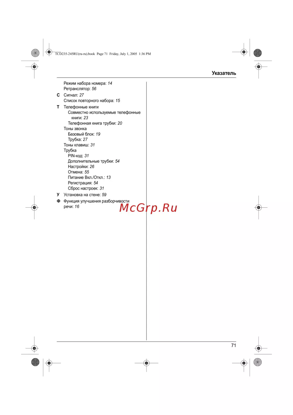 ![Panasonic KX-TCD245 [71/72] Указатель](/views2/1989190/page71/bg47.png)