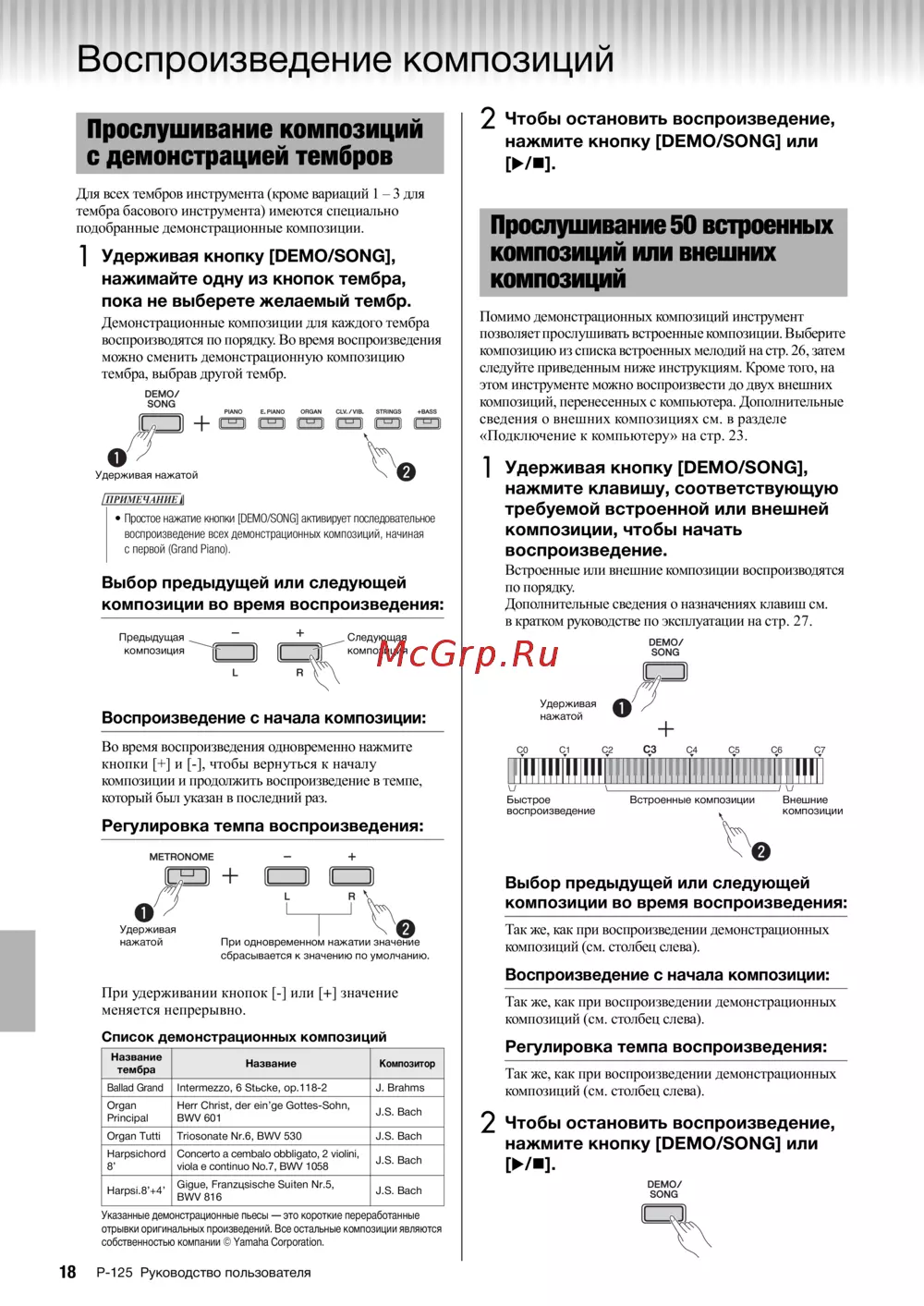 Yamaha P-125B [18/34] P 125 руководство пользователя