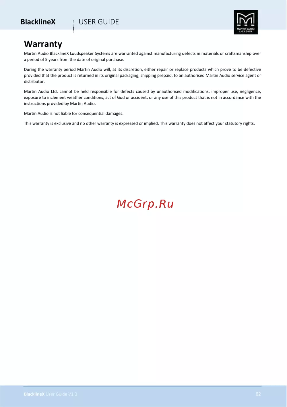 MartinAudioBlacklineXLoudspeakerSystemsarewarrantedagainstmanufacturingdefectsinmaterialsorcraftsmanshipover