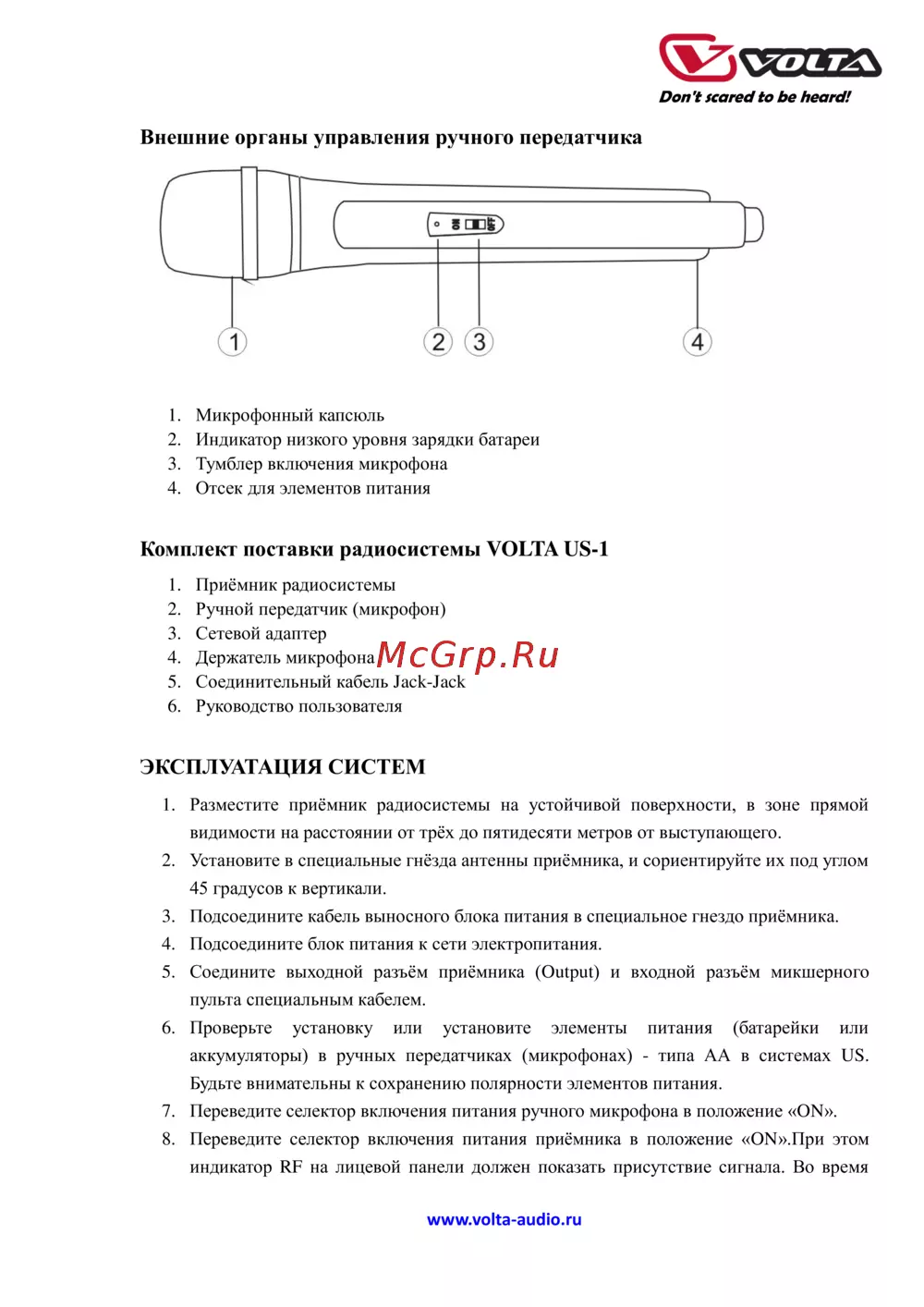 Volta US-1 (710.20) [6/8] Комплект поставки радиосистемы volta us 1