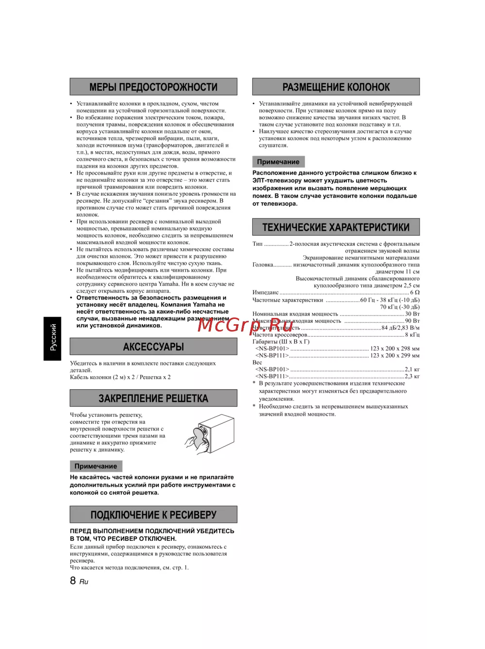 ![Yamaha NS-BP111 (ANSBP111PIANOW) [8/12] Технические характеристики](/views2/1990739/page8/bg8.png)