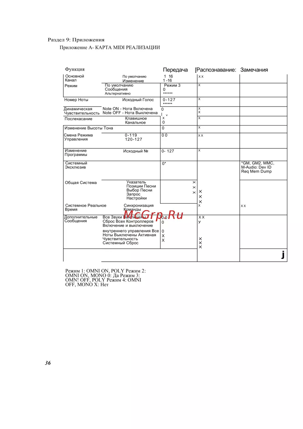 Приложение А- КАРТА MIDI РЕАЛИЗАЦИИ