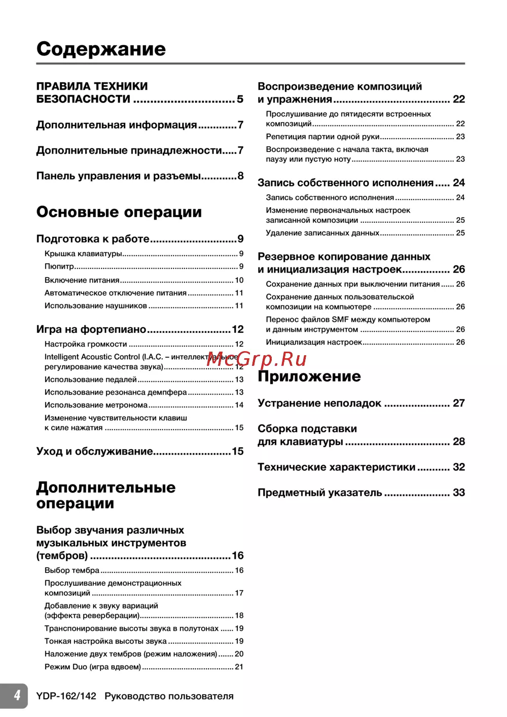 ![Yamaha YDP-142R Arius [4/36] Правила техники безопасности](/views2/1991574/page4/bg4.png)