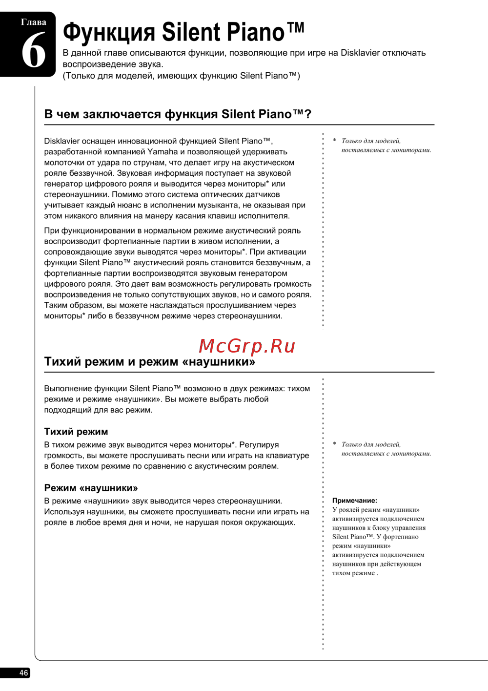 функции Silent Piano™ акустический рояль становится беззвучным, а