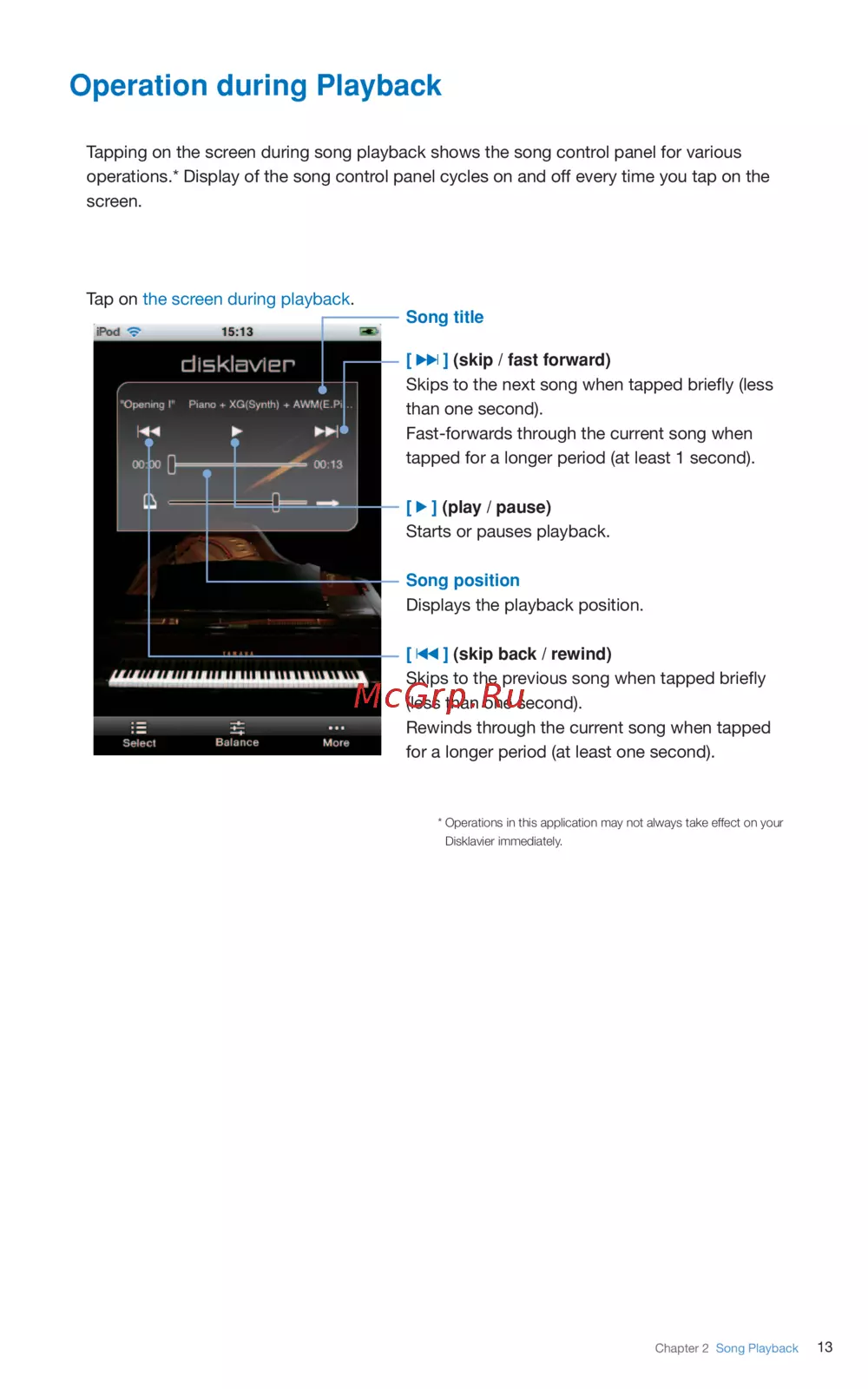 - Operation during disklavierradio playback p.21