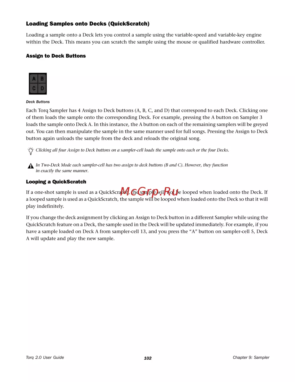 a looped sample is used as a QuickScratch, the sample will be looped when loaded onto the Deck so that it will
