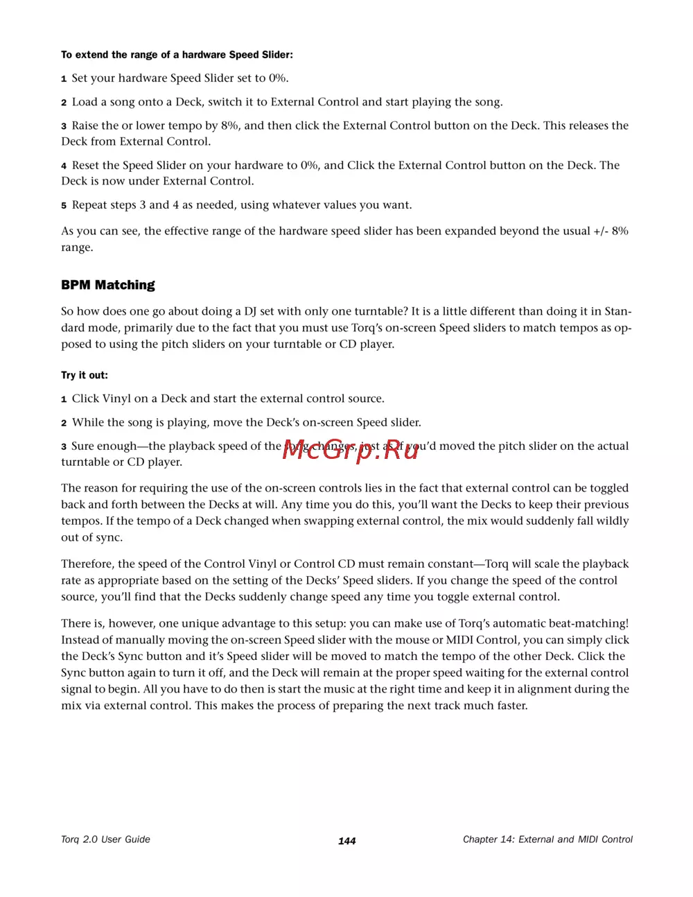 3 Raise the or lower tempo by 8%, and then click the External Control button on the Deck. This releases the