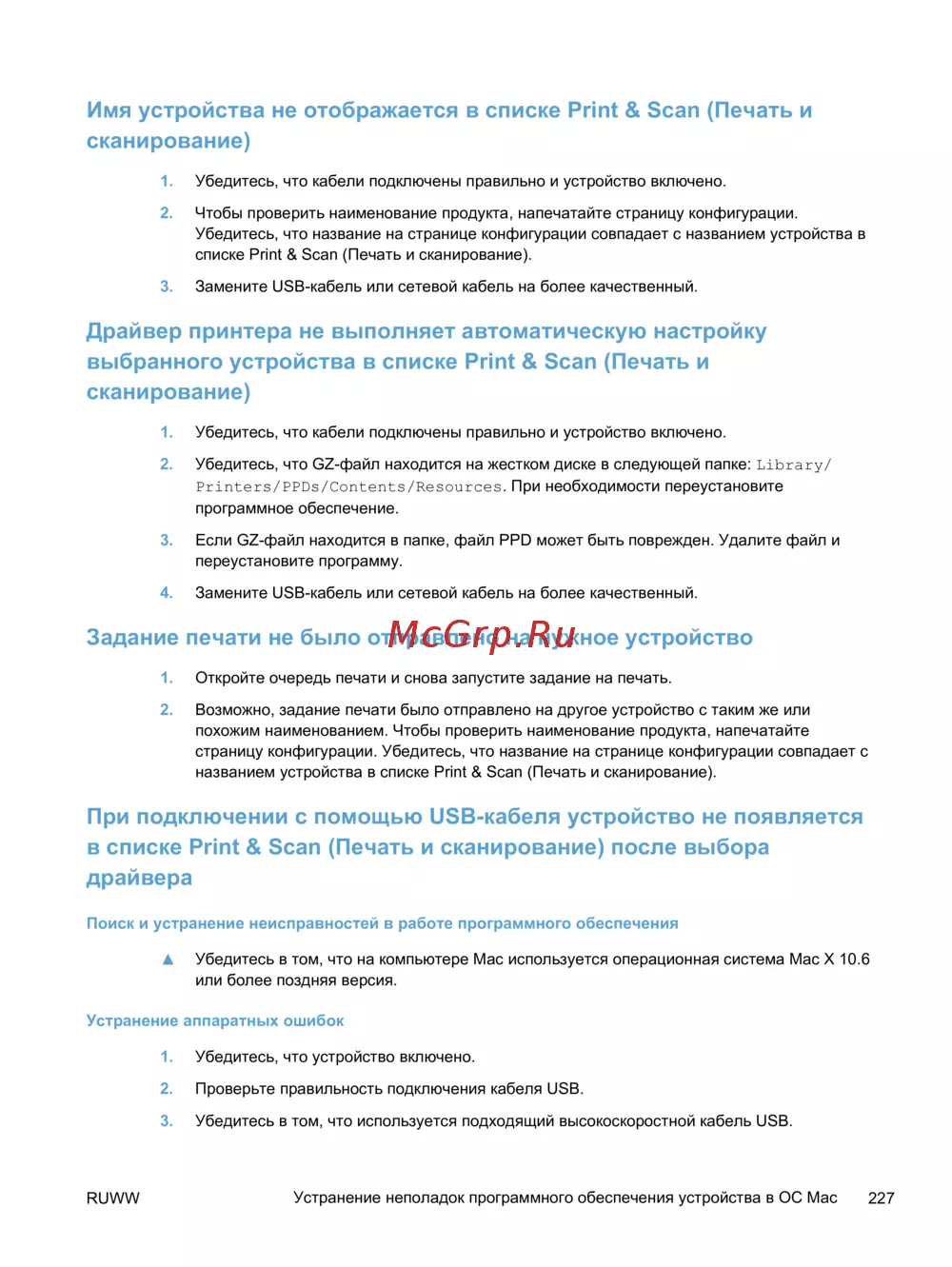 Устранение неполадок программного обеспечения устройства в ОС Mac