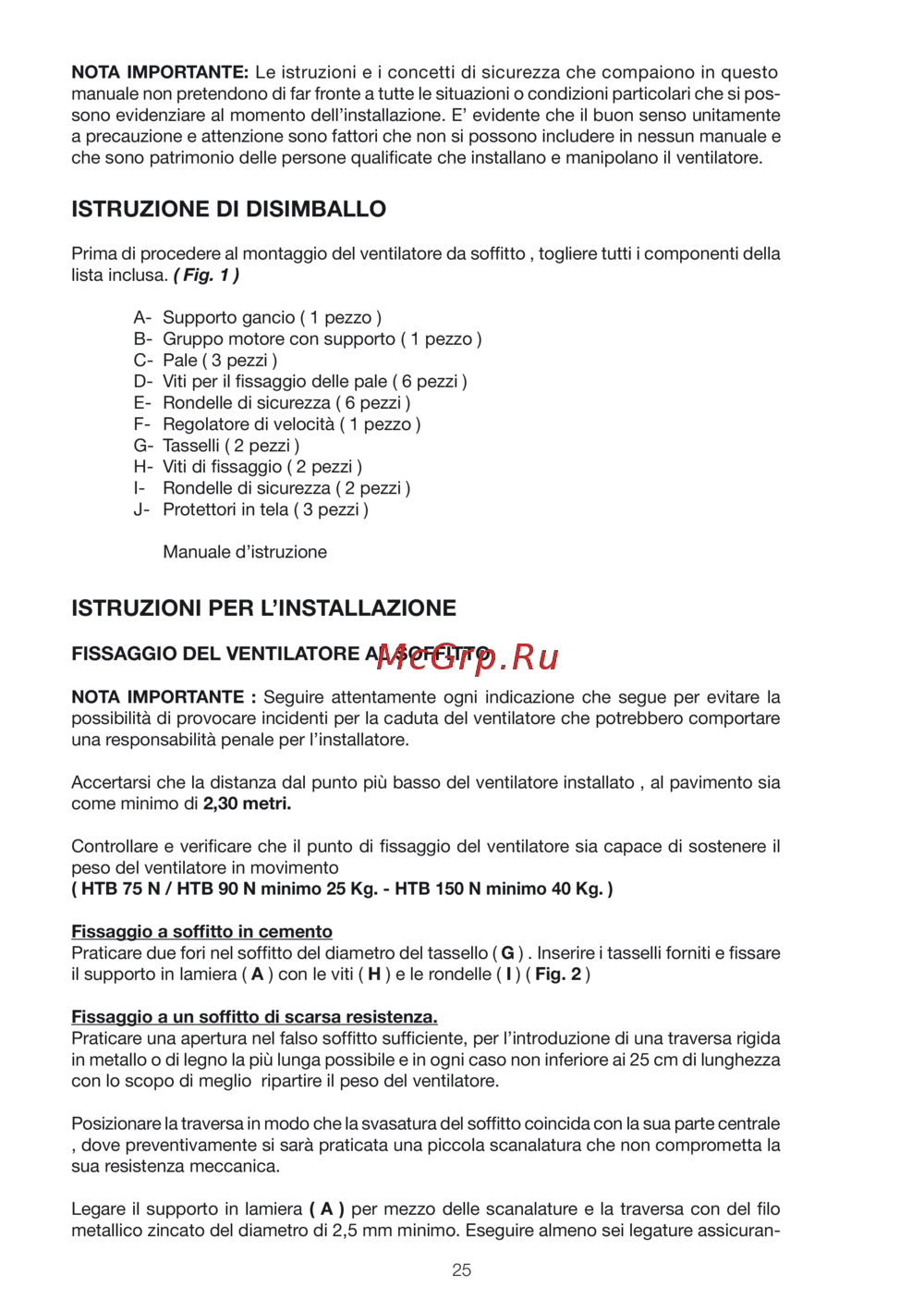 2-Per una installazione a regola d’arte, legga il manuale delle istruzioni e prenda visione dei
