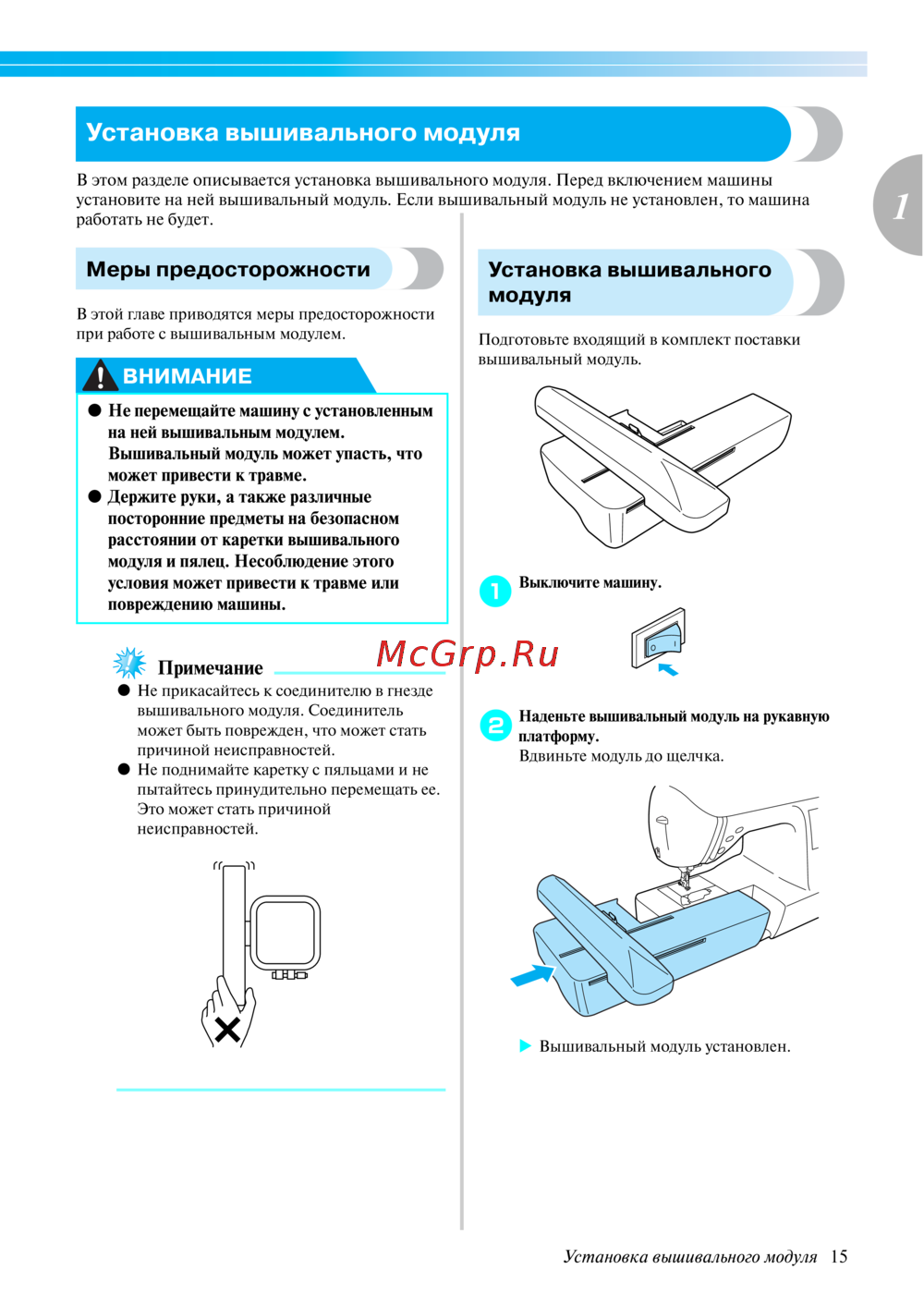 - Вышивание шаг за шагом 14 установка вышивального модуля 15 p.5