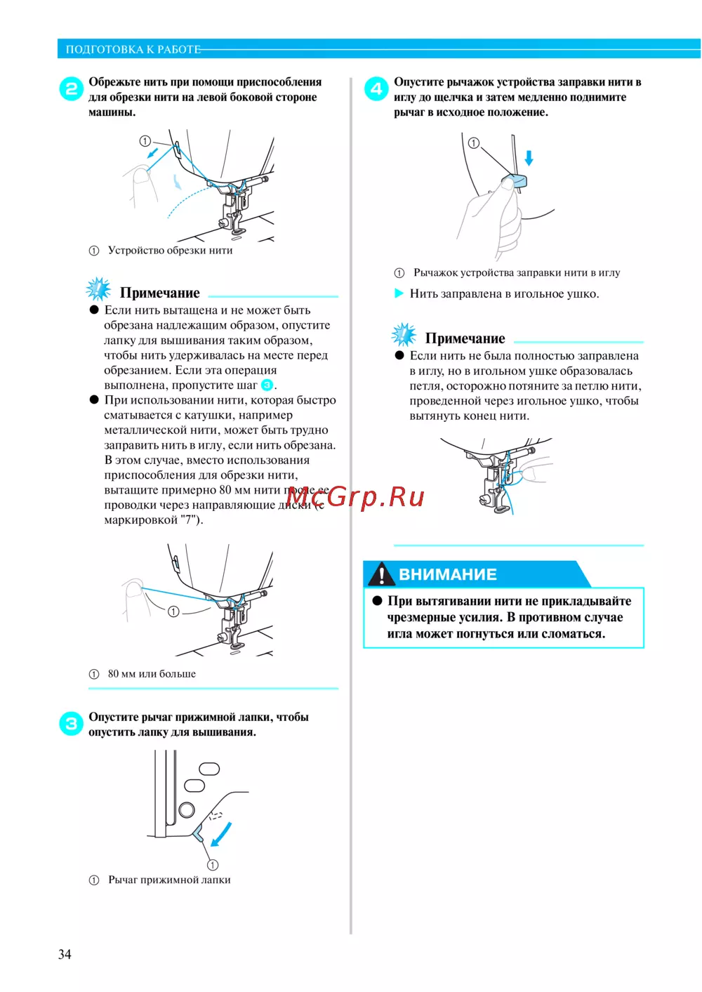 - Не нажимайте кнопку кнопка обрезки нити если нити уже были обрезаны это может привести к поломке иглы запутыванию нитей или повреждению машины не нажимайте кнопку кнопка обрезки нити если под лапкой для вышивания нет ткани или во время вышивания поскольку это может привести к повреждению машины p.60