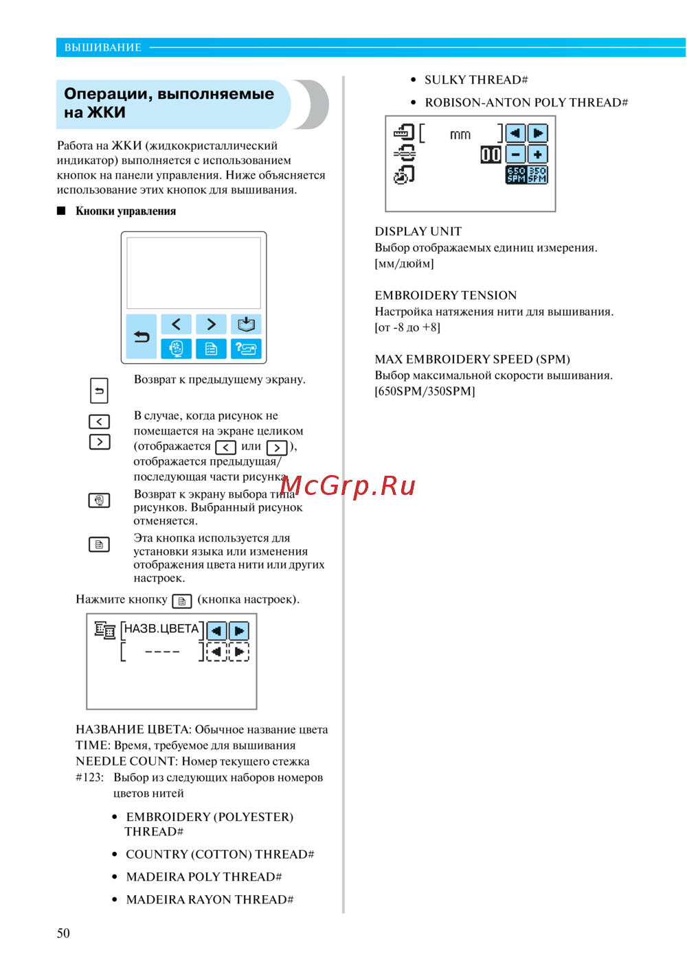 Brother Innov-is NV770E [52/88] Операции выполняемые на жки