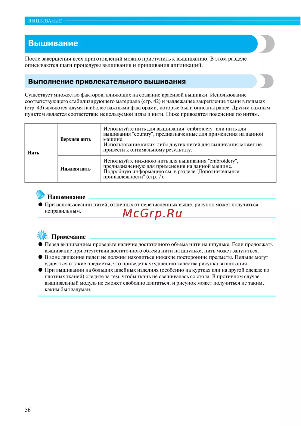 Использование какихлибо других нитей для вышивания может не
