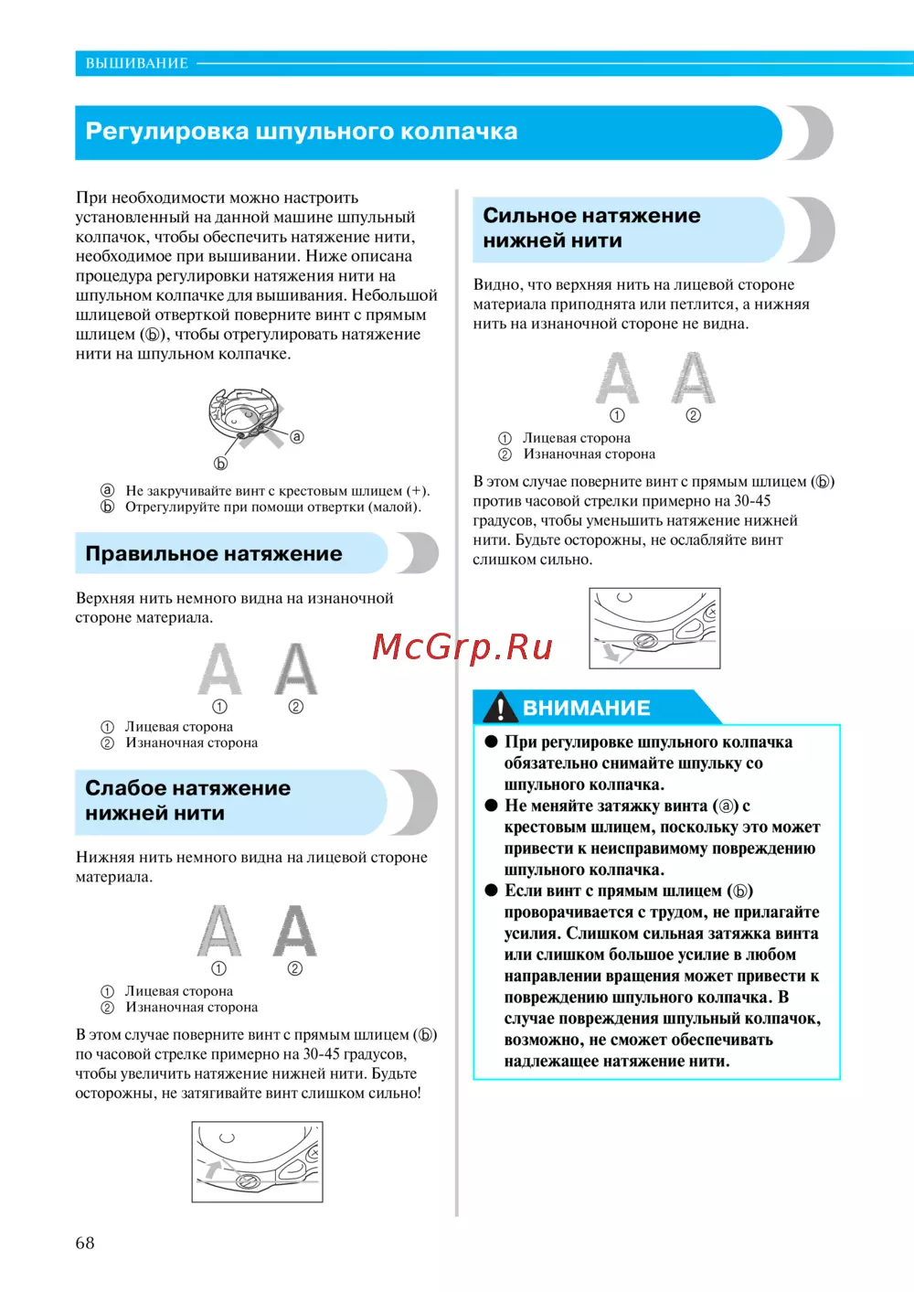 чтобы увеличить натяжение нижней нити. Будьте