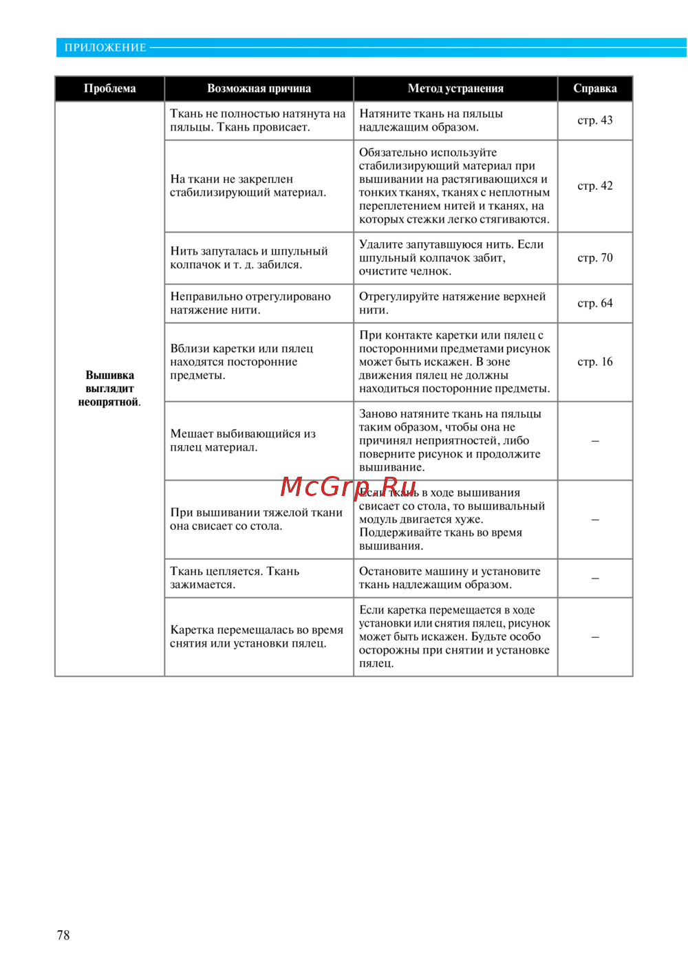 - Если машина перестала нормально работать то перед тем как обратиться за помощью в сервисный центр выполните следующие проверки если проблема остается обратитесь по месту покупки машины или в ближайший уполномоченный сервисный центр p.76