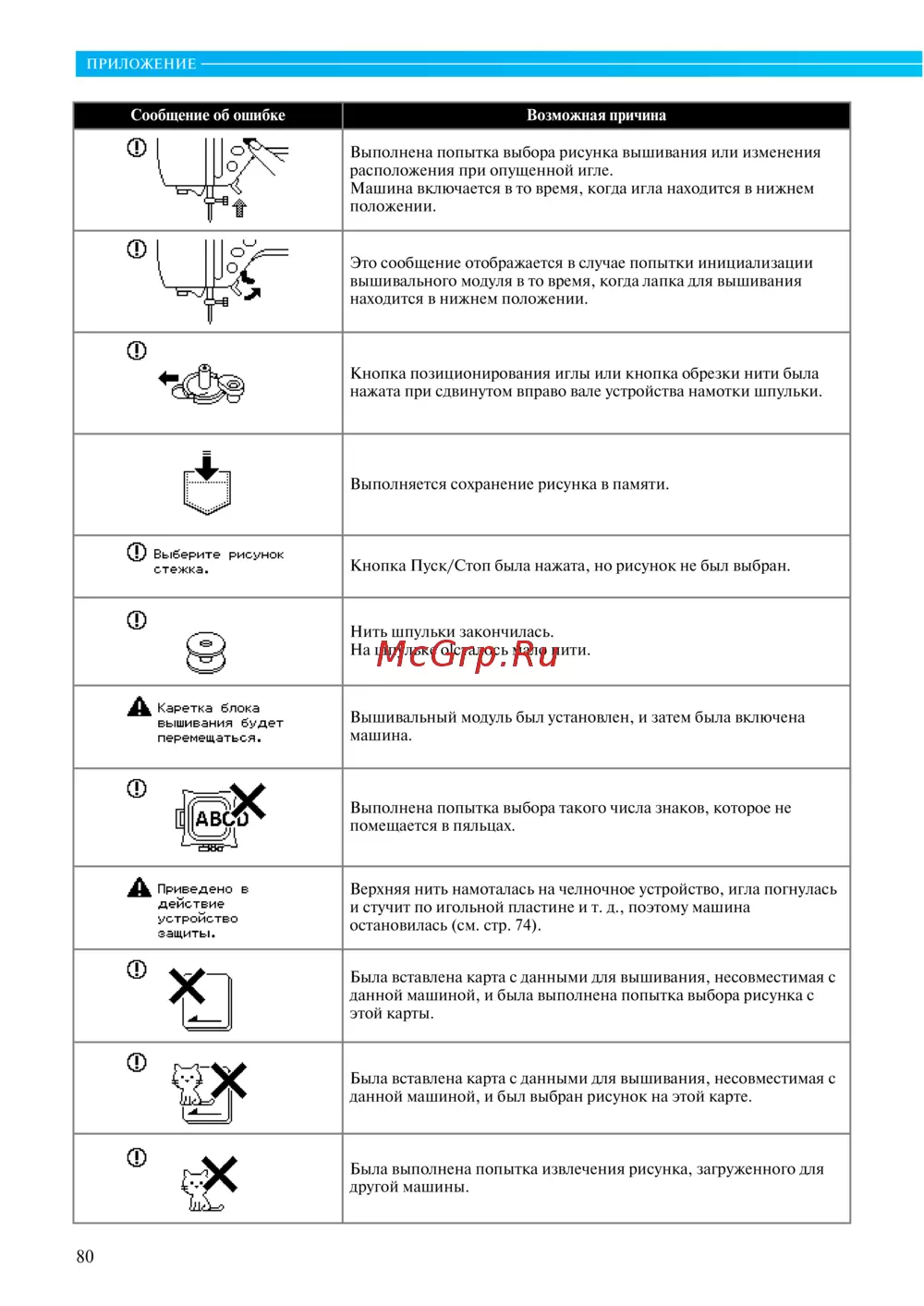 - Если машина перестала нормально работать то перед тем как обратиться за помощью в сервисный центр выполните следующие проверки если проблема остается обратитесь по месту покупки машины или в ближайший уполномоченный сервисный центр p.76