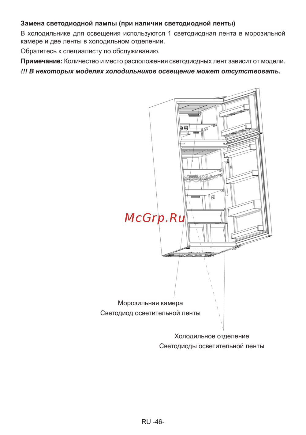 !!! В некоторых моделях холодильников освещение может отсутствовать.