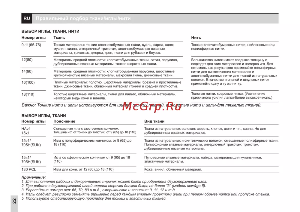 Âàæíî: Òîíêèå íèòè è èãëû èñïîëüçóþòñÿ äëÿ øèòüÿ òîíêèõ òêàíåé, à òîëñòûå íèòè è èãëû-äëÿ òÿæåëûõ òêàíåé.