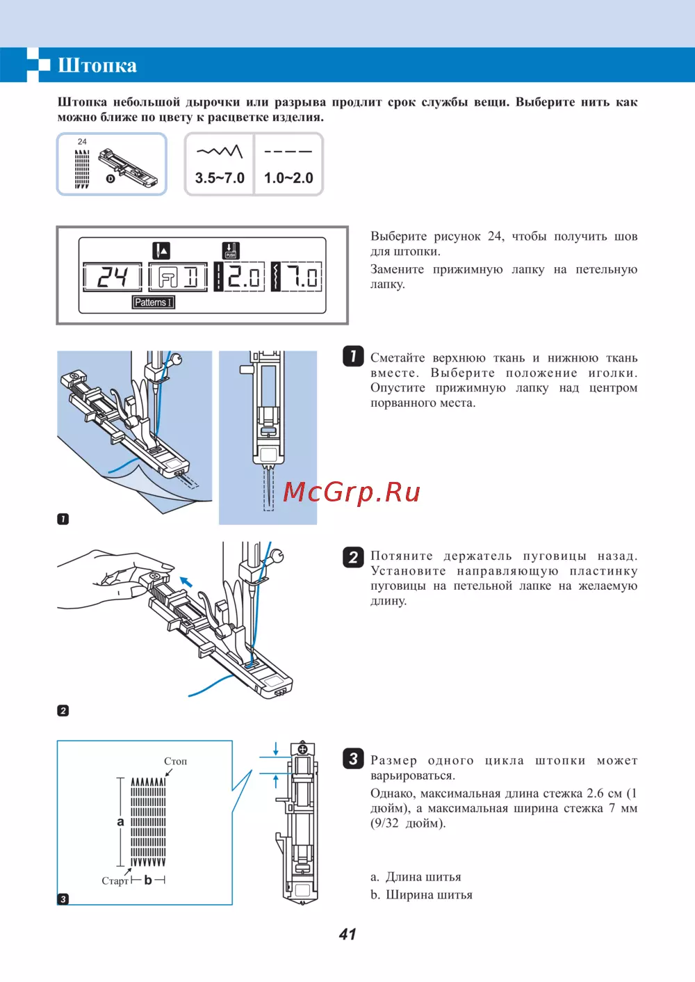 - Ïðèìå àíèå ïðè øèòüå ñäâîåííîé èãîëêîé øèðèíà ñòåæêà äîëæíà áûòü óñòàíîâëåíà ìèíèìóì íà 5 p.12