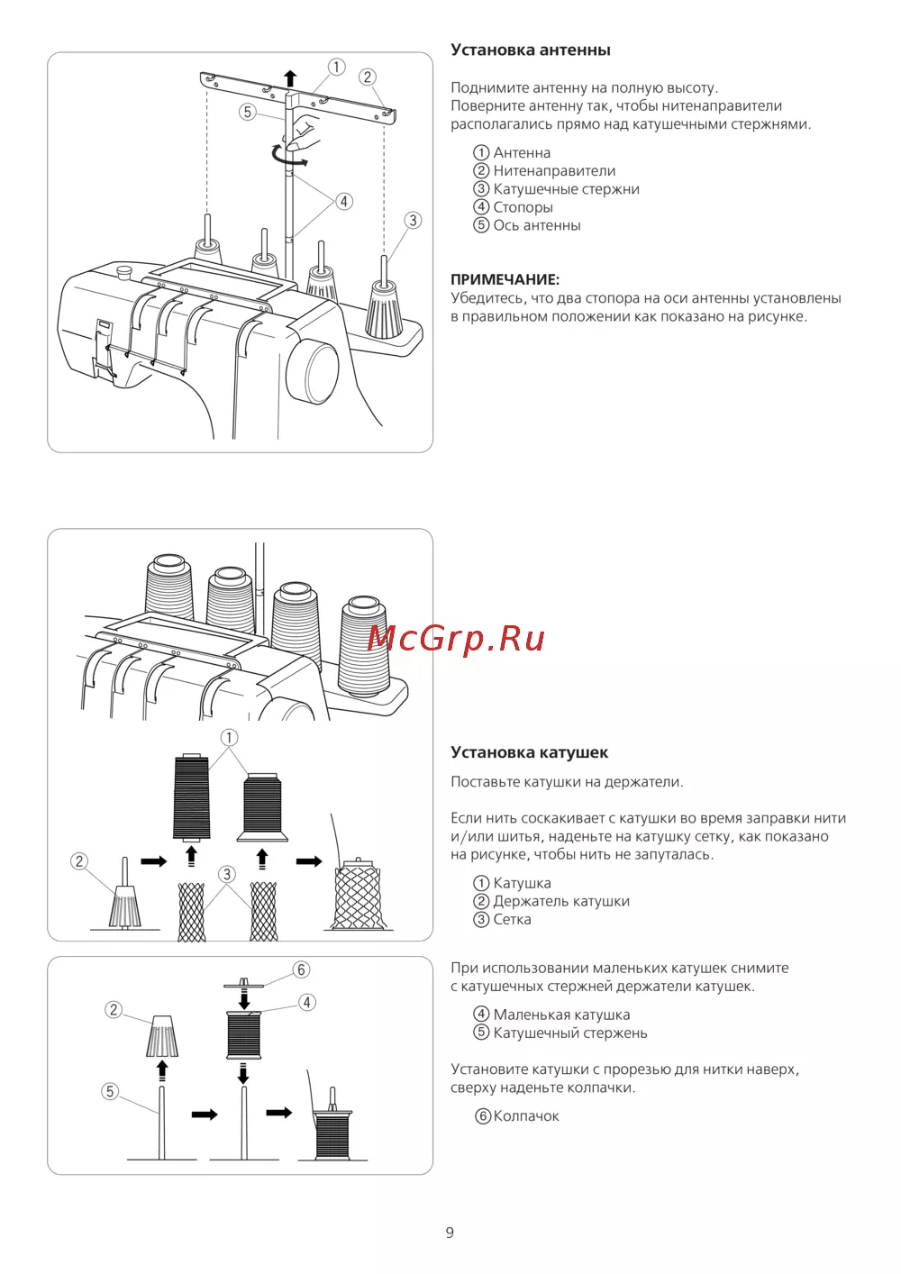 ![Janome Cover Pro 2000 CPX [10/26] Установка катушек](/views2/1997511/page10/bga.png)