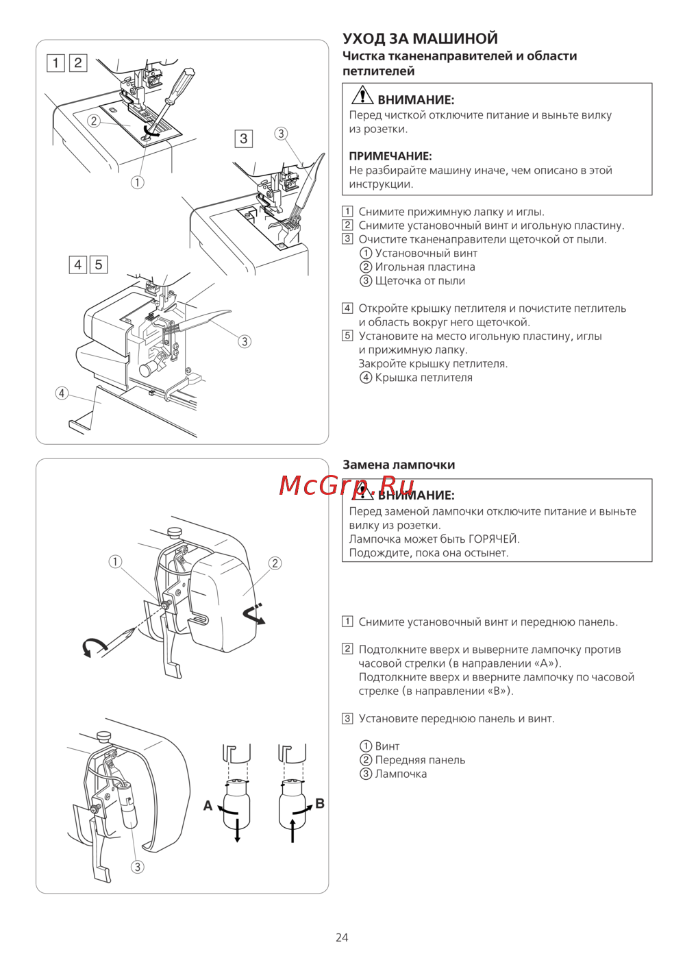- Уход за машиной p.25