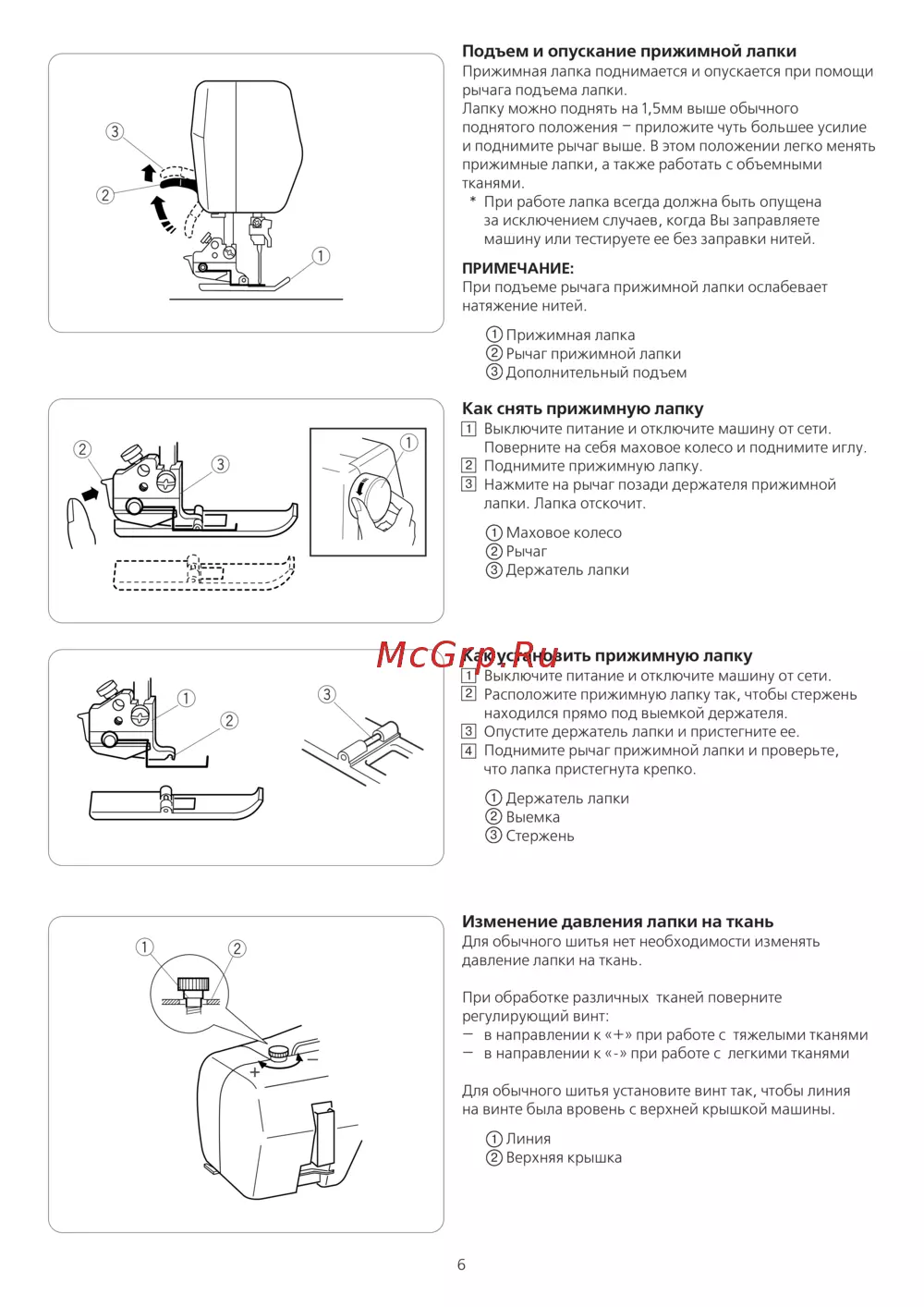 - Как снять прижимную лапку p.7