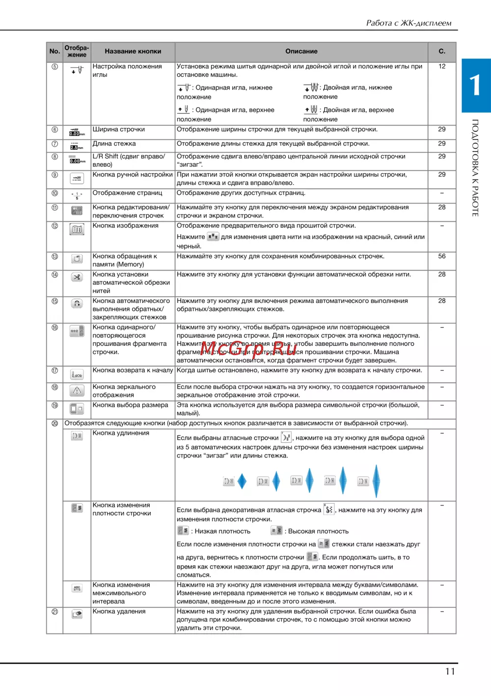 7 Длина стежка Отображение длины стежка для текущей выбранной строчки. 29