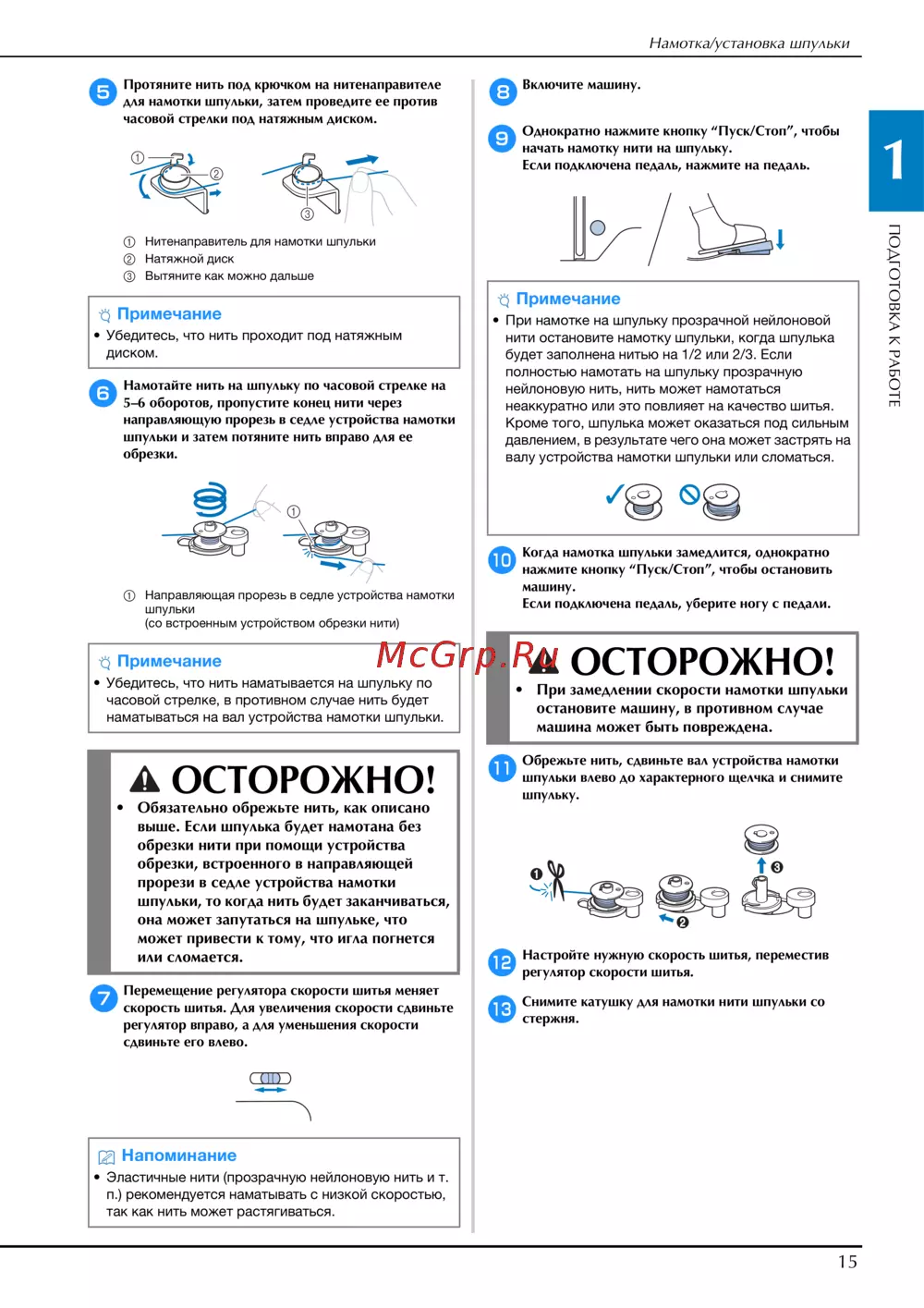 - Не снимайте седло устройства намотки шпульки даже если нить запуталась под ним в противном случае возможно повреждение ножа встроенного в седло устройства намотки шпульки не выворачивайте винт направляющего стержня устройства намотки шпульки так как в противном случае возможно повреждение машины невозможно размотать нить вывернув винт p.86