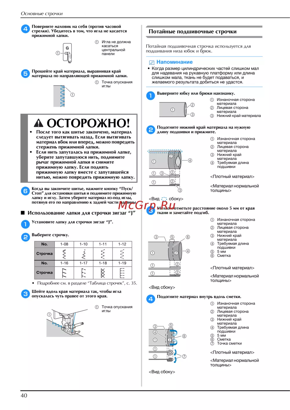 Brother 270 M [42/100] Потайные подшивочные строчки