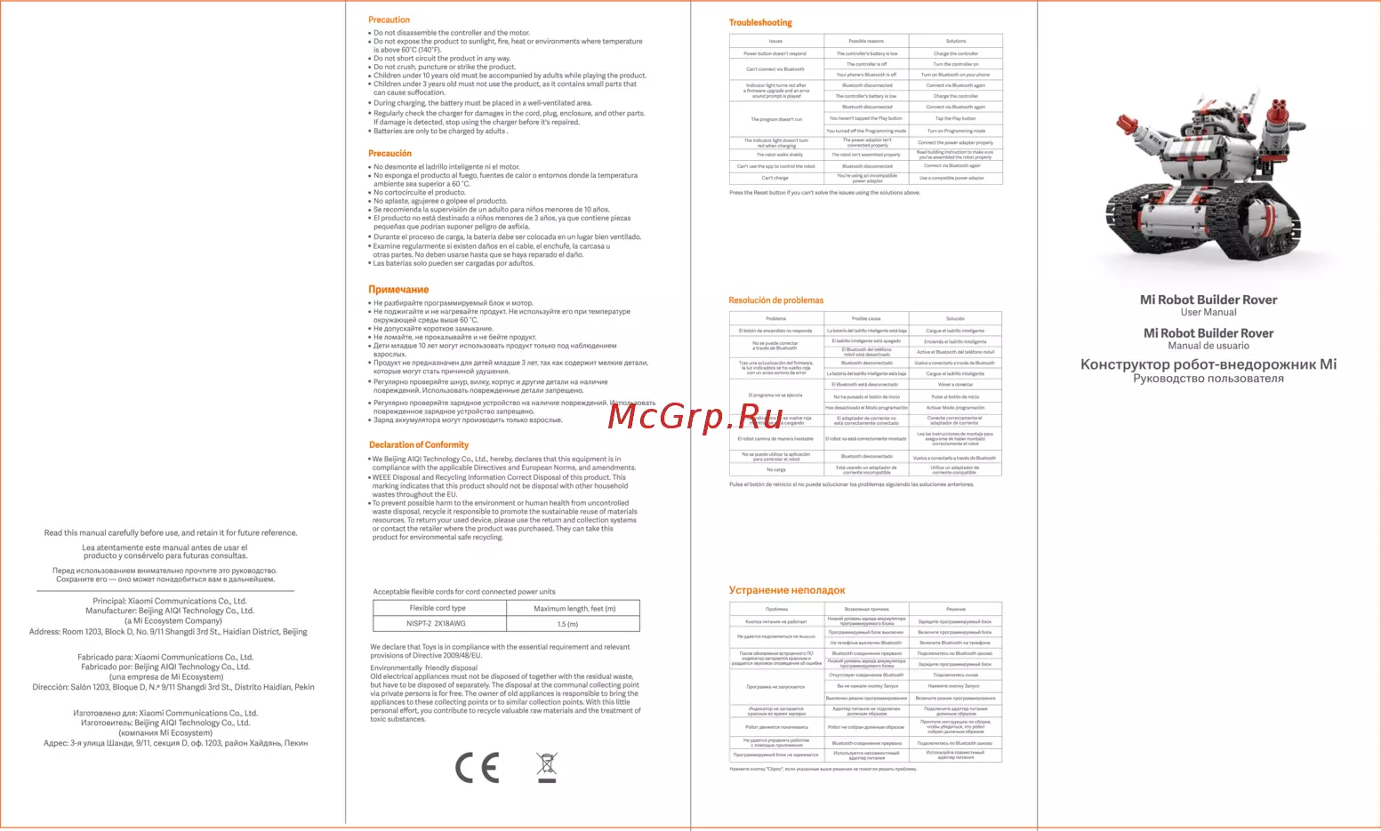 Xiaomi Mi Robot Builder Rover LKU4037GL Руководство по эксплуатации онлайн