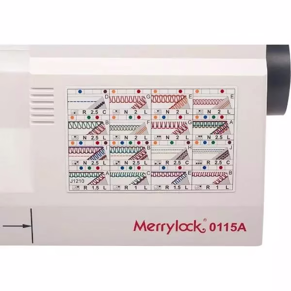 Что означают английские буквы в таблице строчек инструкции модели каверлока Merrylock 0115A на стр. 35?