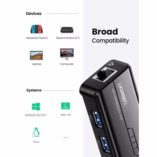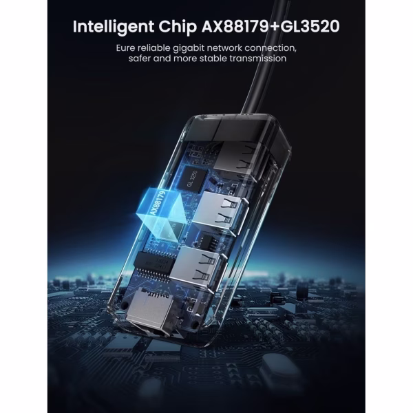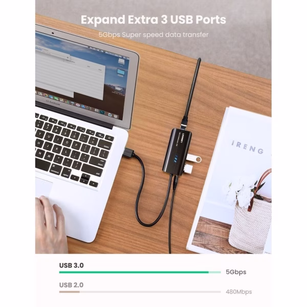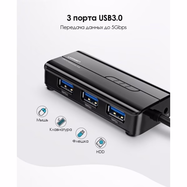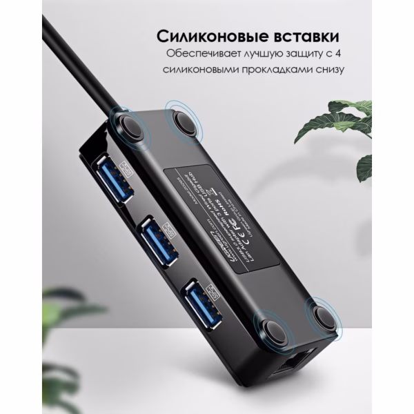 uGreen 4 в 1 (хаб), 3 x USB 3,0, RJ45 (20265) 20265 .